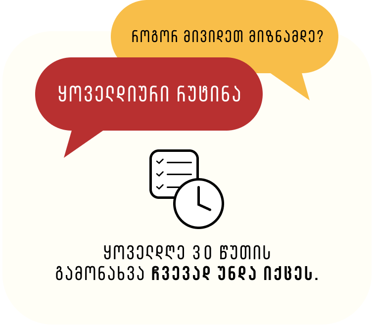 შეუერთდი ჩვენს WhatsApp-ის ჯგუფს და აირჩიე კვირაში 3-4 გაკვეთილიდან სასურველი დრო.